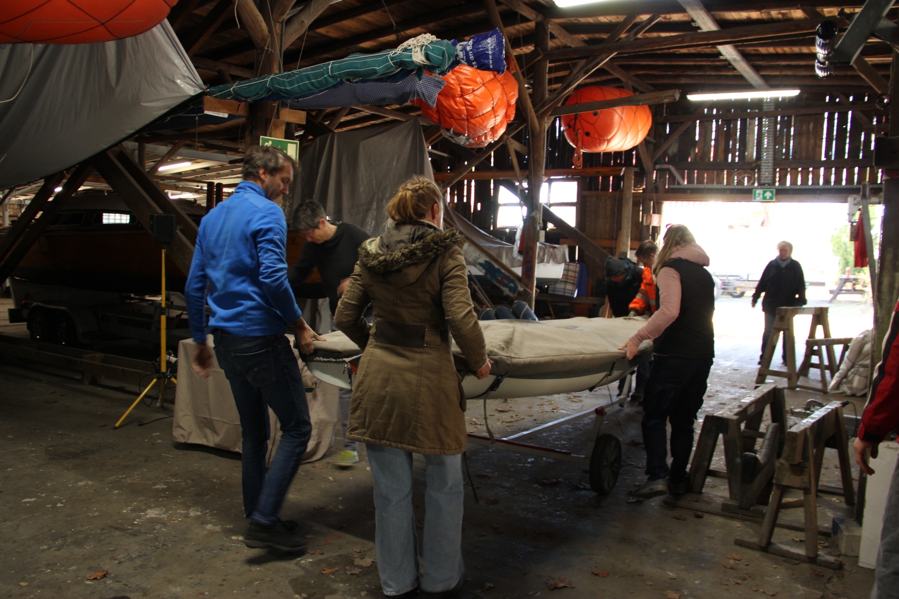 Da einige Boote leider noch nicht den Bootsschuppen verlassen konnten, war dieser nach Abschluss der beiden Tage noch ungewöhnlich voll. Zum großen Leidwesen von Nadine und unserem Neuzugang Noa scheint ihr Boot sogar einen größeren Schaden aufzuweisen, der erst beim Slippen sichtbar wurde. Wir drücken die Daumen, dass sich die Befürchtungen nicht bewahrheiten.