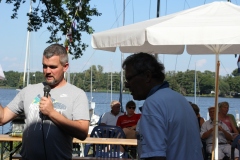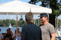 Entgegen der Tage zuvor wehte der Wind am ersten Tag eher als leichte Brise daher und ließ nur sporadisch die eine oder andere Böe über den Seddinsee huschen. Die angekündigten drei Wettfahrten am ersten Tag konnten dennoch durchgeführt und der Grill rechtzeitig angeschmissen werden. Das kühle Blonde durfte natürlich auch nicht fehlen.